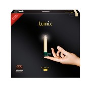 Die elfenbeinfarbene Lumix Classic Mini Christbaumkerze ist der klassischen Wachskerze nachempfunden.